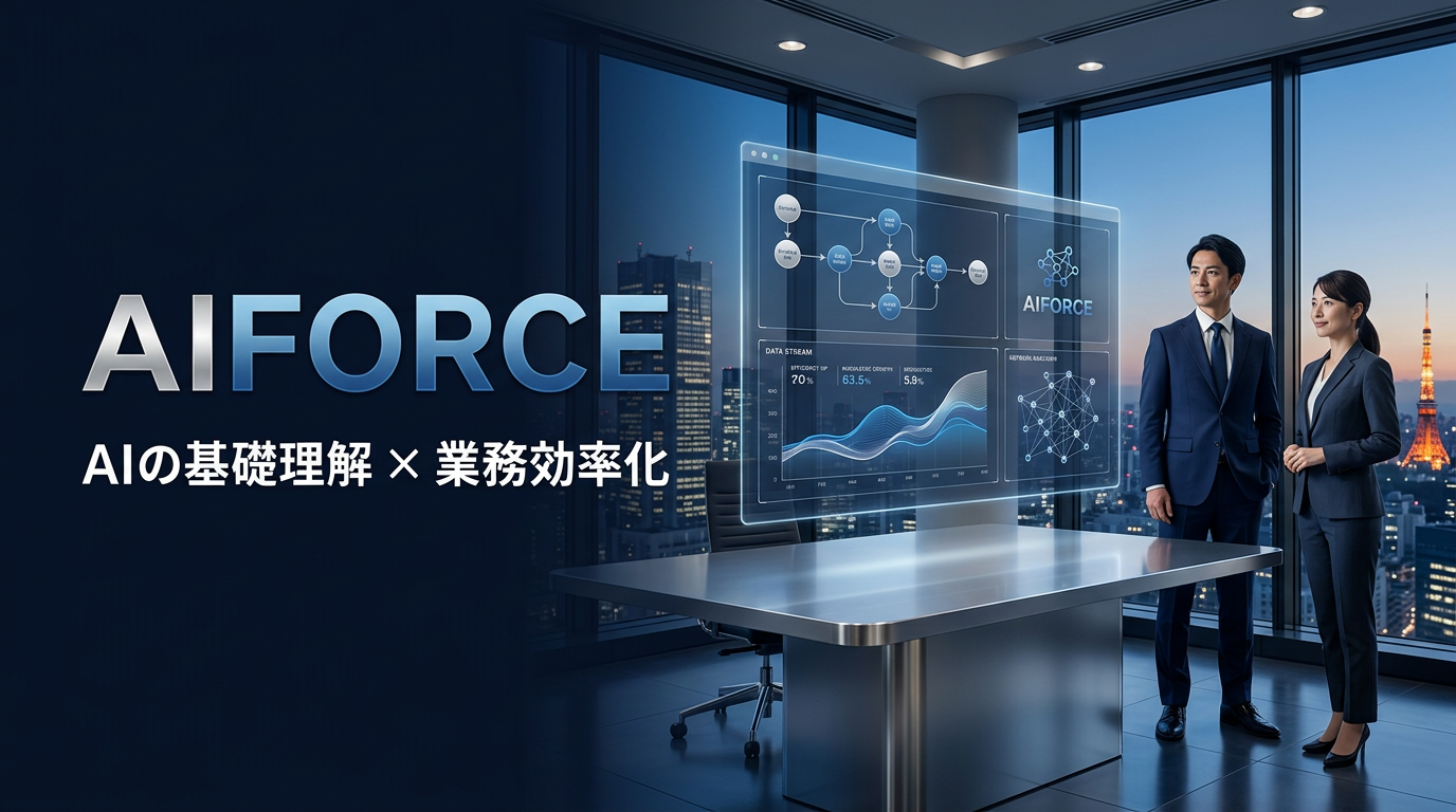 AI-FORCEは、製造業・建設業・IT/システム開発業をはじめとする中小企業の従業員が、業務でAIを実践的に活用できるようになることを目的とした、全720分(12時間)の動画学習プログラムです。